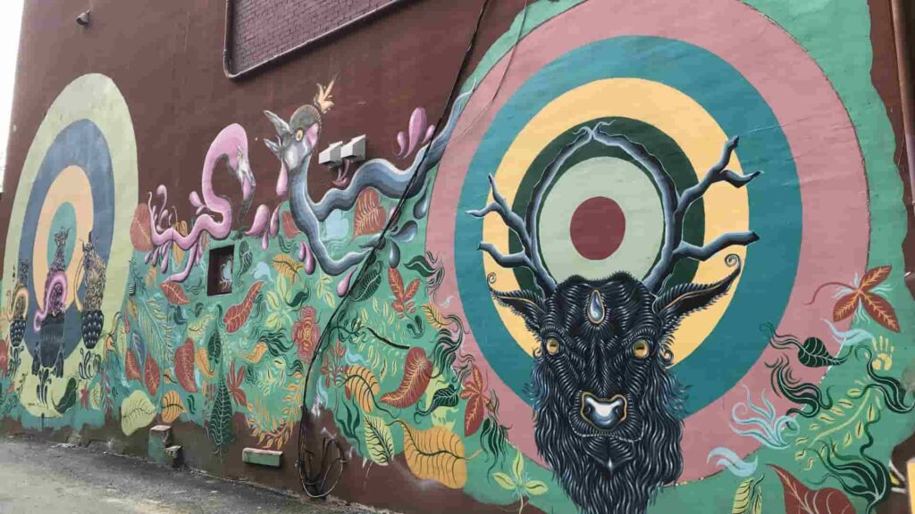 近くにはアートギャラリーや軽食を楽しめる店もあります。