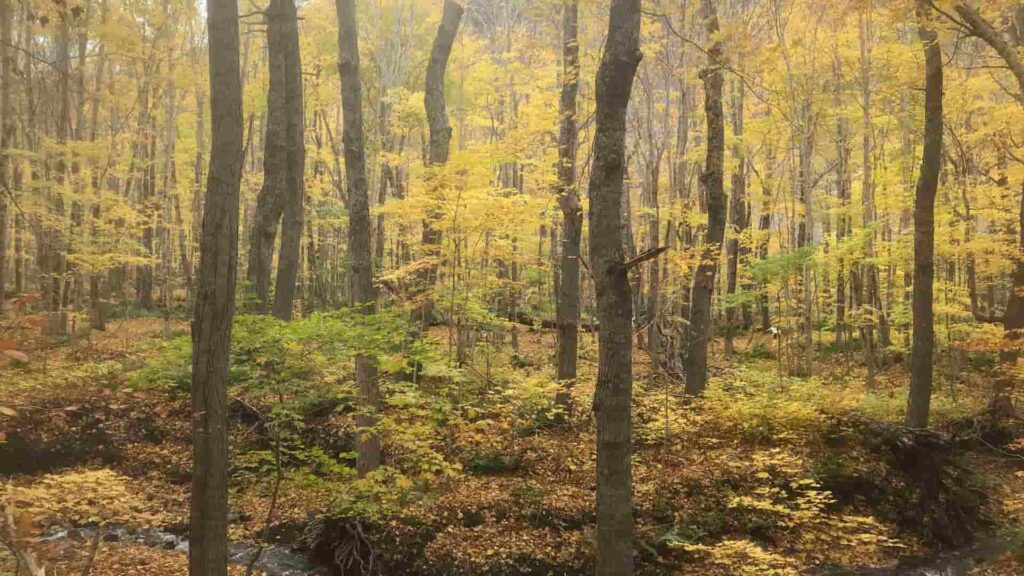 特に10月上旬〜中旬は森が黄金色に染まります。