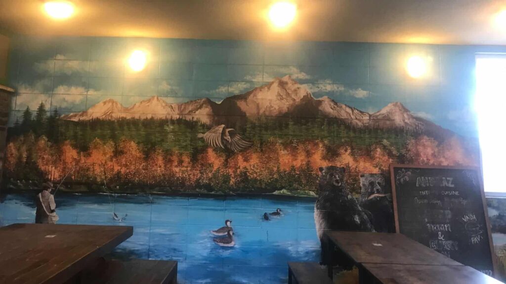 [カナダ・アルバータ州ジャスパーの街中での壁アート]